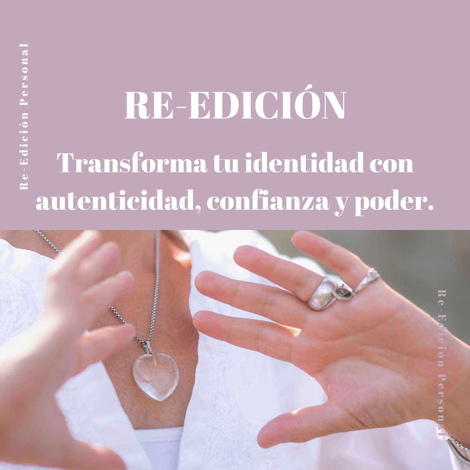 Re-Edición Personal® es un camino de autoconocimiento y crecimiento personal, donde encontrarás acompañamiento personalizado y cercano, pero la verdadera transformación surge de tu disposición y entrega.